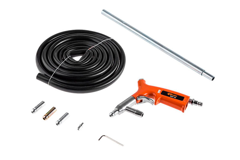 - Шланг для захвата материала – 3 м. Забирает материал из любых ёмкостей – мешков, вёдер, бочек и т.д.